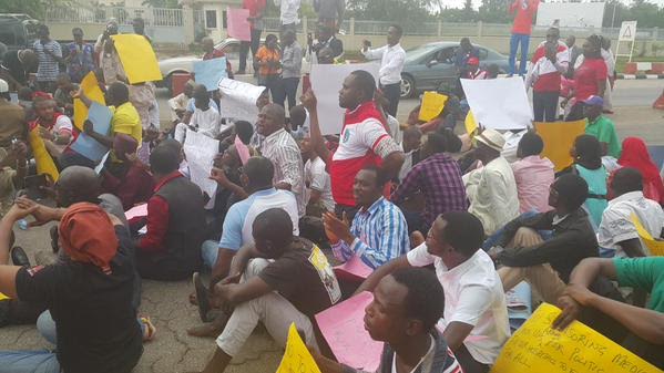 Nigerians living in Abuja are as of now organizing an Anti-corruption protest at the entryway of Aso Rock in Abuja. The group say they are calling President Buhari to proceed in his battle against Corruption in Nigeria. They were received by Senior Special Assistant on Media and Publicity to President Buhari, Garba Shehu and Special Adviser on Media and Publicity to president Buhari, Femi Adesina. More photographs bellow.