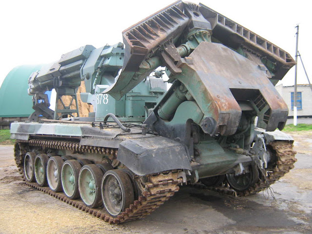 Built on the base of the main battle tank T-72, the IMR-2M has an armor against shell fire. It is designed for clearing lanes in zones of destruction, laying roads on broken ground, as well as for creating passes through ditches and embankments. For this purpose, the vehicle is equipped with a powerful dozer blade, an extending boom and pick-and-place manipulator with a lifting capacity of 2 tons. The powerful multi-fuel diesel engine allows the IMR-2M to reach speed up to 60 km/h. The vehicle is armed with 7.62-mm PKT machine gun and is able to accommodate a crew consisting of 2 persons.