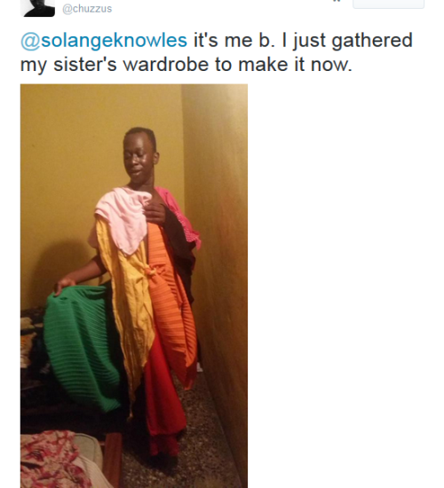 Solange Knowles shared this photo on twitter and asked “Anyone know who designed this?” Now see the reply she got from a Nigerian bellow.. too funny!