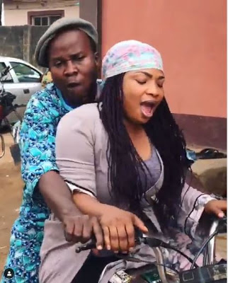 In a hilarious video, popular Nigerian actress, Laide Bakare was seen mourning as fellow actor, Wale Akorede rocks her on a bike. Ooduarere under Entertainment Gist section reports.
