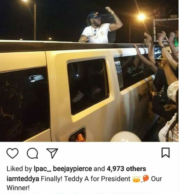 He is truly a king.Teddy A was welcomed with a hummer jeep after he was evicted from BBNaija