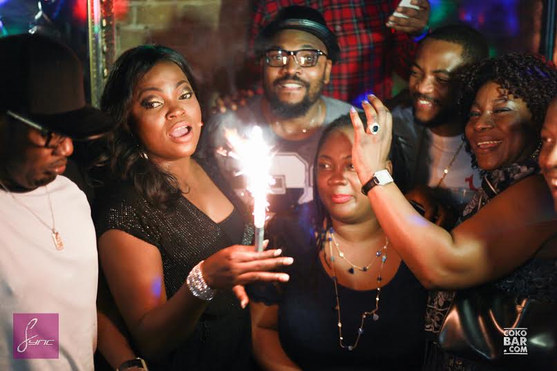 Funke Akindele marked her birthday in London during the weekend with a large group of partners and famous people. The Jenifa star danced the night away as she absorbed the blissful atmosphere. Ropo of Cokobar gave the performing artist a glammed 3 decker cake. See more photographs bellow.
