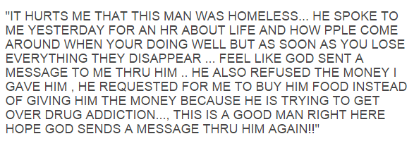 Davido took to instagram to impart a piece of the discussion he had with the vagrant. See what he composed bellow.