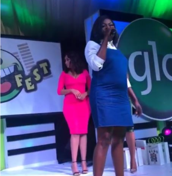 The ‘Jenifa Diary’ lead act stepped out yesterday glowing as she showed off her growing baby bump at the Glo Lafta Fest 2017 that held in Festac, Lagos. (Photos and video Below)