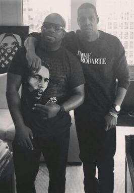 Jay Z pictured with Storm Records’ manager Tola Odunsi as they met today at Roc Nation Headquarters in New York.