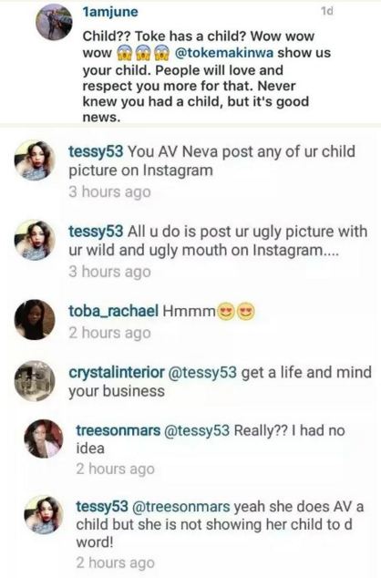 Toke’s fans trolled the Instagram user who accused her of hiding her child