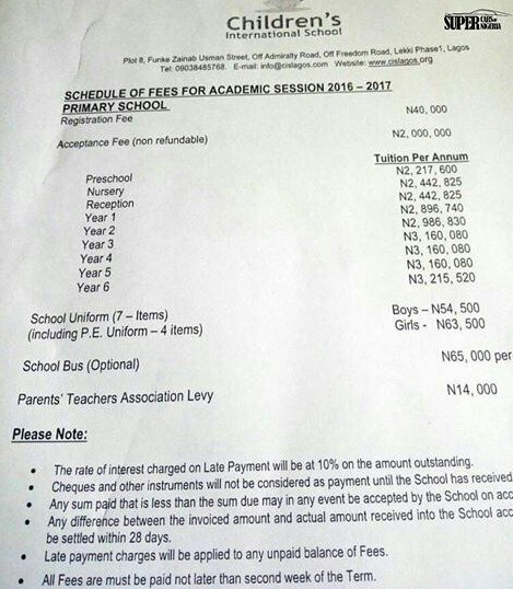 A lady took to Twitter expressing shock at the huge sum of money a Primary school in Lekki Phase 1 Lagos is charging parents for accepting their children into school. The management of Children’s International School in Lekki is yet to reply the Twitter outburst