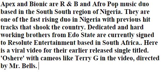 Home / Music / Music Video / Listen to New Music video: Apex & Bioni – Oshere