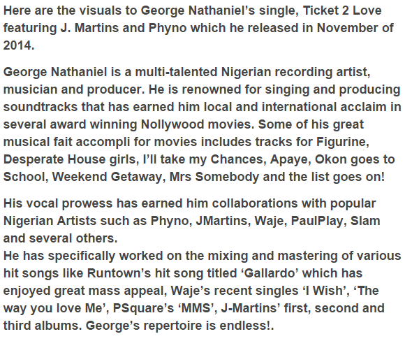 Music VIDEO: George Nathaniel ft. J. Martins & Phyno – Ticket 2 Love
