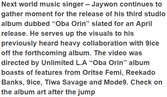 New Music Video: Jaywon ft 9ice – Jolly Muke