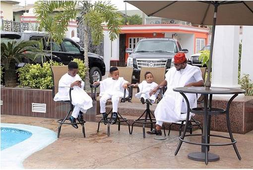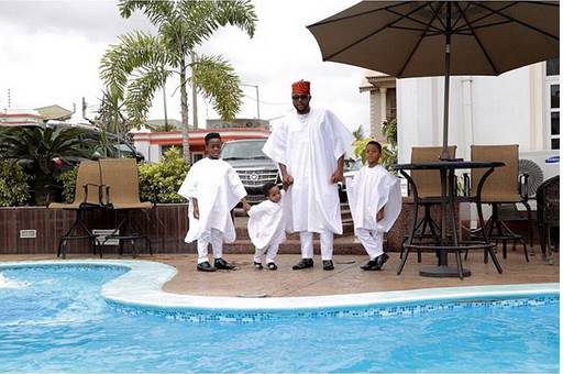 E-money and his 3 sons stepped out today in corresponding outfit (Agbada) !