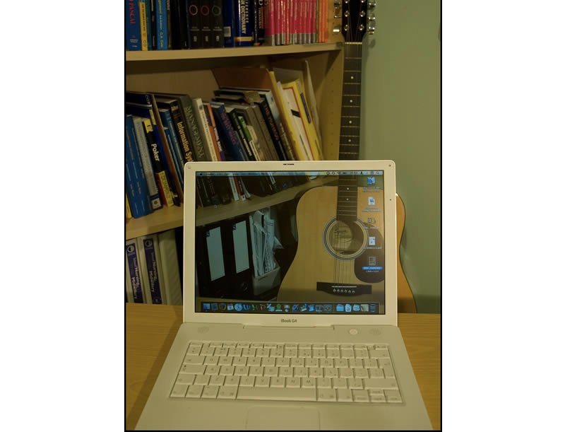 This is a shot featuring a MacBook and the office background. Perfect timing and angle means you don’t need any Photoshop trickery.