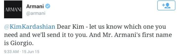 Kim K west stylishly replies Giorgio Armani twitter handle