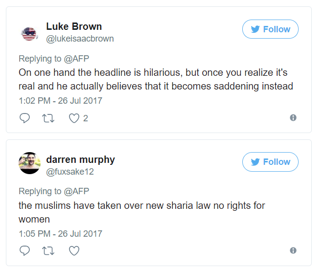 Others mocked his comments, saying that an “emotionally abused” Malaysian man can receive satisfaction from his “other three wives.” Under Islamic law in Malaysia, a man can have four wives.