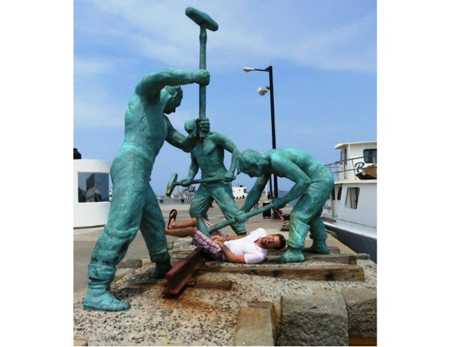 How adorable is this little child dancing with this statue?