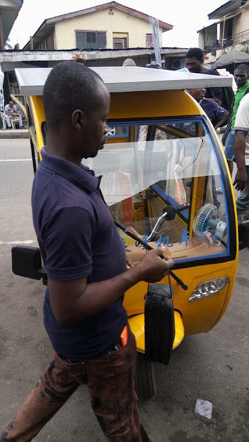 Home / Naija Gist / Metro life / A proud Nigerian Man & His Solar-Powered Keke Spotted In Yaba, Lagos. (Pics)