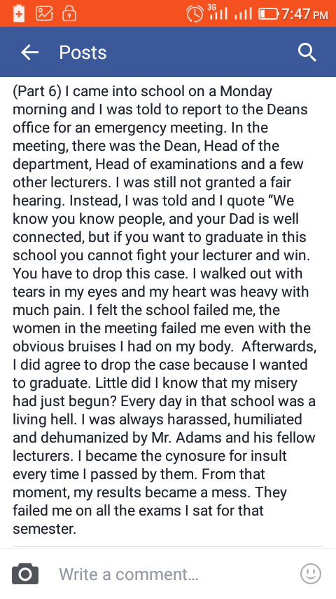 A student of the university of Abuja has taken to social media to call out a lecturer who victimised her, read details bellow
