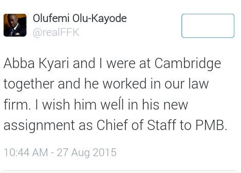 FFK Reacts To Abba Kyari’s Appointment As Buhari’s Chief Of Staff