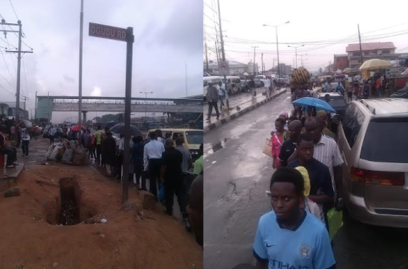 Photos: Lasgidians continue queueing to cross the Ojota pedestrian bridge