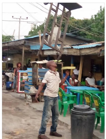 Magician spotted in lagos lifting a heavy trolley with his teeth