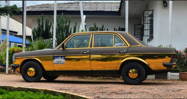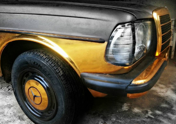The old Mercedes Benz which was recently customized and wrapped with Metta Bronze / Chrome GOLD -is causing a buzz among car lovers.