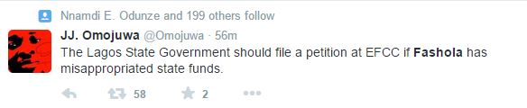 This is serious. This Ambode, I knew it. Tinubu’s Puppet.. You can’t tarnish Fashola ‘s image. Foul play dey smell