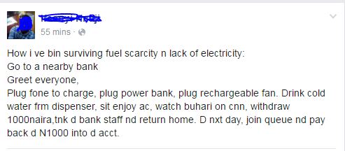 Home / Naija Gist / Metro life / See the funny way this guy has been surviving the no fuel no light situation