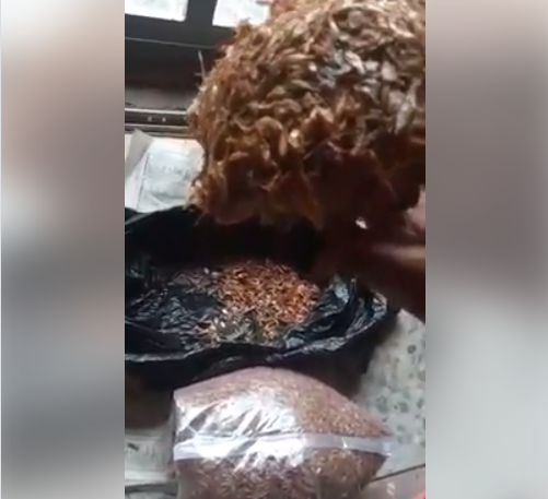 When she asked about the contents of the bag, she was told it contains crayfish, beans, garri and other foodstuffs. But the lady decided to check the items for herself as she saw the hard drugs well concealed inside one of the crayfish as she raised an alarm and decided to post the video online as to warn Nigerians to be careful in this kind of situation.