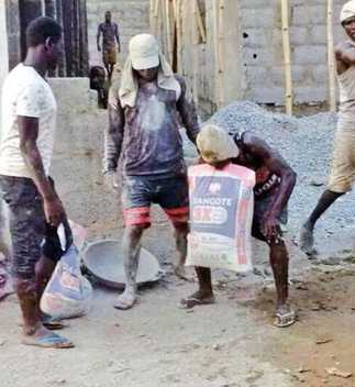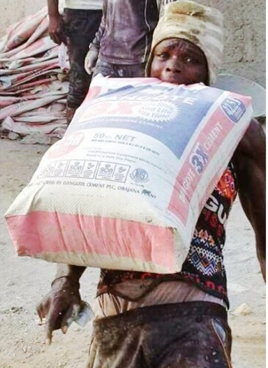 Photos of Labourer Carrying Bag Of Cement With His Teeth In Lagos (Talent ?)