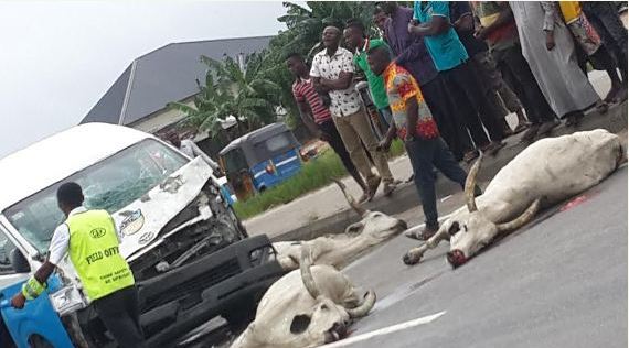 Pics: Bus Hits & Kills Some Cows In Delta State