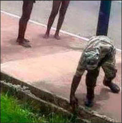 Is there justification for this if this is valid?? This photos having been humming the web in the wake of being shared on Facebook by a witness who saw the stunning incidence…According to the onlooker, the soldier returned home to meet his wife on his marital bed with another man bamboozling, only to parade them exposed in the city