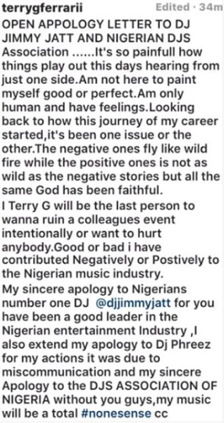 TerryG apologized for slapping DJ JimmyJatt’s protégé during a stage performance. If you missed the post click here.