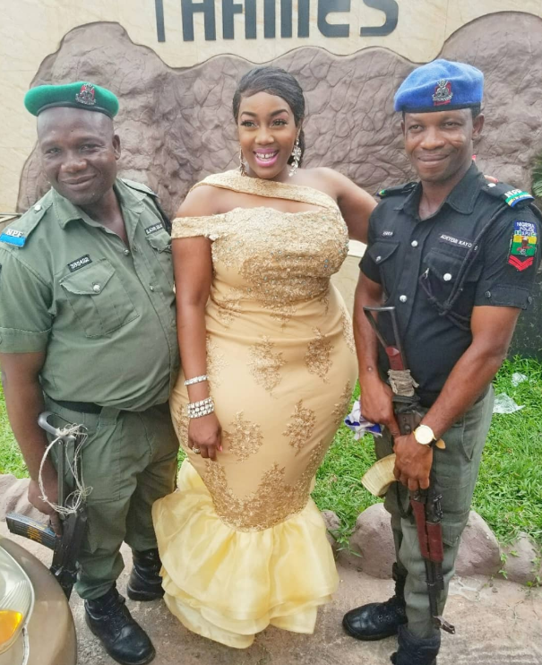 These two Nigerian police officers are pictured all smile as they posed with the heavily endowed lady at a wedding over the weekend.