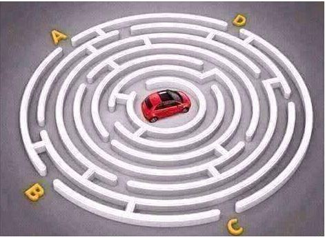 Which path did the car follow to get to the middle?….Is it A, B or C?