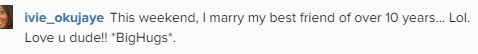Super capable performing artist, Ivie Okujaiye, 27, will be getting hitched to her man of 10 years, Ezzy, this weekend. Traditional marriage is tomorrow, and her white wedding is Saturday April 18th in Abuja.