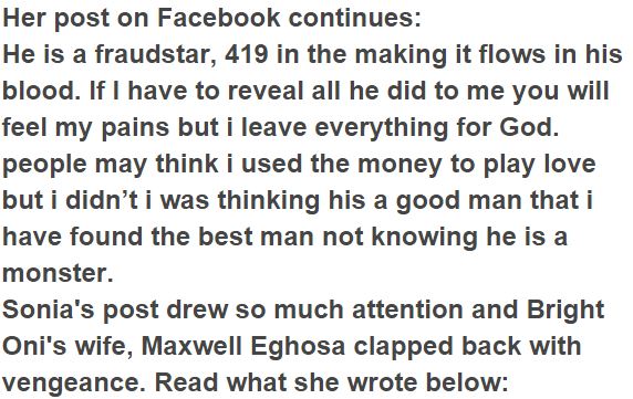 A wild show is presently playing out on Facebook after a Switzerland-based Nigerian woman, Sonia Efe called out her sweetheart kid for supposedly utilizing fake propositions to be engaged to swindle Nigerian women on Facebook. Also, yesterday, recovered an epic reply from the man’s wife, Maxwell Eghosa.