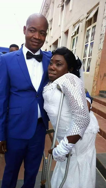 A Physically challenged bride, wedded her boo, in a quiet wedding ceremony. A Nigerian Facebook user posted the couple’s wedding photos and wrote: