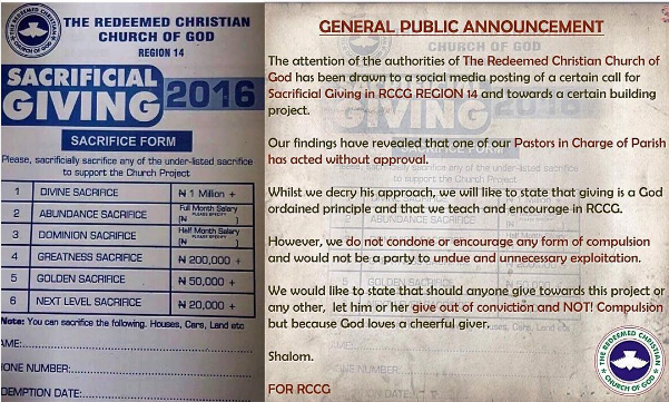Home / Naija Gist / Religion / The RCCG authorities address the issue of the controversial sacrifice form