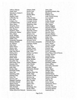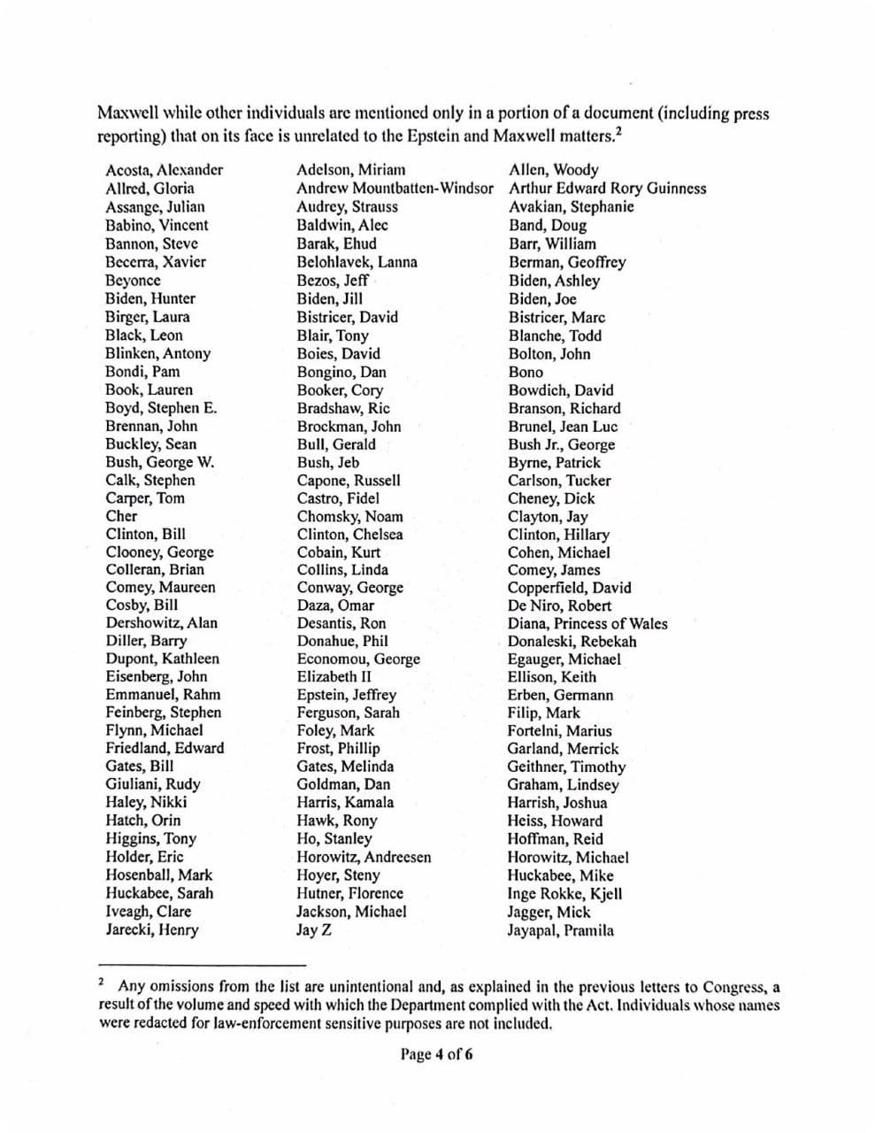 The roster includes names such as Barack and Michelle Obama, Bill and Hillary Clinton, Donald Trump, Bill Gates, Mark Zuckerberg, Elon Musk, Kamala Harris, Nancy Pelosi, Prince Harry, Pope John Paul II, Robert De Niro, Woody Allen, Kim Kardashian, Bruce Springsteen, Bono, Jay-Z, Beyoncé, and many others.