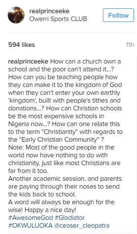 Home / News From Nigeria / Breaking News / How can a church own a school and the poor can’t attend it ? – Actor Prince Eke