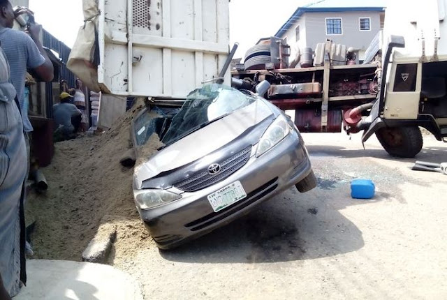 Home / News From Nigeria / Breaking News / Again! Trailer somersault and land On a Vehicle In Lagos. (Images)
