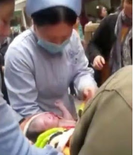 Arabirin oloyun yii lomo bere si ni mu lonii nigboro ilu China. Awon eniyan ti won lo ni won sare se iranlowo fun un. Won pe obirin noosi kan ti n be nitosi won, arabirin noosi naa si bo soju ise lowo kan. Alaafia ni omo tuntun naa wa bayii gege bi telifisan CCTV tilu China se gbe si mi leti.