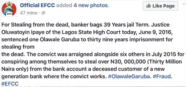 Home / News From Nigeria / Breaking News / Banker bags 39 years in jail for stealing from the Dead