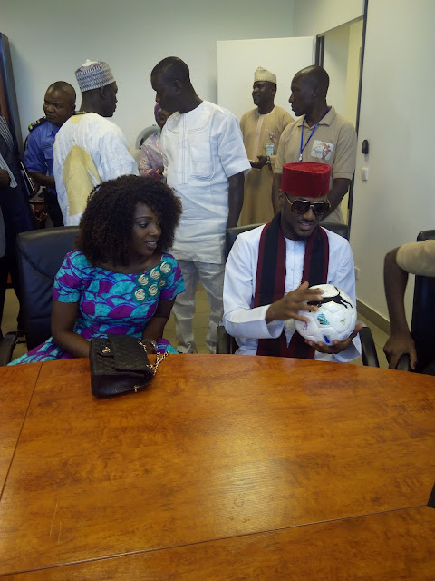 2face and Annie Idibia at the Governor’s office in Kaduna State. Going on at this time in Kaduna State is a function to crown Nigerian pop icon, 2face Idibia as the ‘Tafindan Kudenda’ (Ambassador for Peace). 2face in company of his wife, Annie Idibia will get the title from HRH Bagudu Galadima of Kudenda Kingdom at Kudenda Palace, Kaduna State.