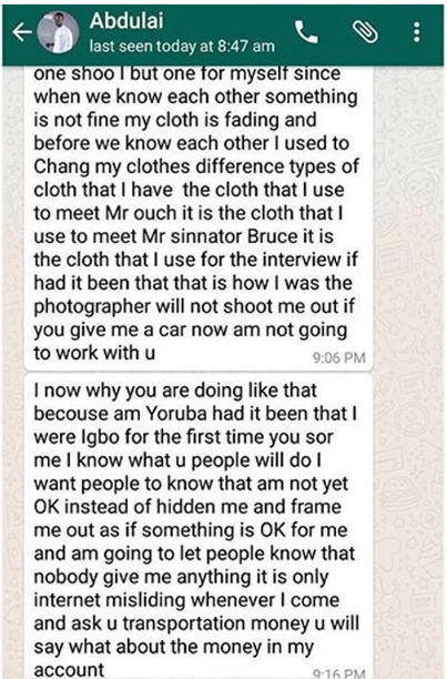 Honesty, we had better plans for you Abdulai but you were more concerned about the daily stipends the STREET offered. It’s fine, after all people throw away Diamonds chasing stones; you will not be the first. Just wish I listened when the photographer shared concerns. about your unstable character (like when You agreed and allowed them to use the #150k given by a Good Samaritan to enable you secure an Apartment in Abeokuta, and after rent was paid you came up days later to say that you no longer want to stay in Abeokuta ).