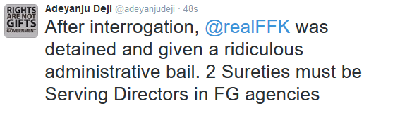 EFCC detains FFK after interrogation.