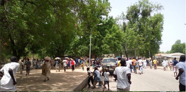 There was chaos at the Borno State Government House today as soldiers and policemen engaged in gun battle over rice meant for IDPs. Since Monday, the government has been distributing bags of rice and Semovita to poor residents.