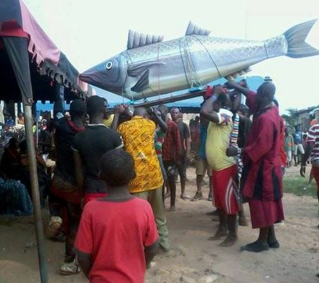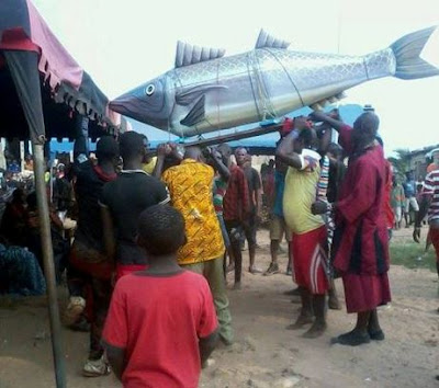 A popular fisherman who kicked the bucket in a village called Oshei in Ghana was buried in a fish casket.