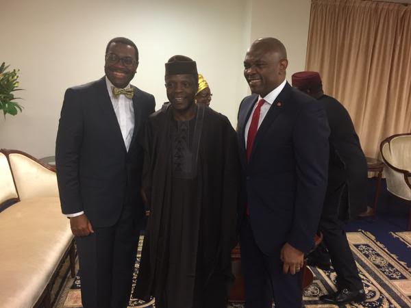 Previous Minister of Finance Ngozi Okonjo Iweala, Aliko Dangote, Ex-Ekiti state governor Kayode Fayemi are among the Nigerians that saw the inauguration of previous Agriculture Minister Akinwunmi Adeshina as the eighth President of the African Development Bank, AFDB in Abidjan today.