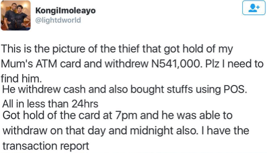 Girl launches campaign to find the man who recently shedded the weight of her mum’s account, by N541k, with her ATM card.